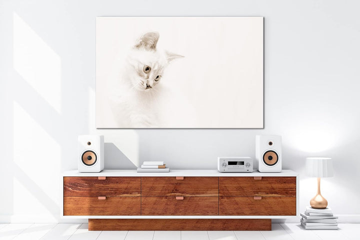 deyoli schneeweisses Kätzchen Effekt: Sepia, Format: 80x60 als Leinwandbild, Motiv fertig gerahmt au