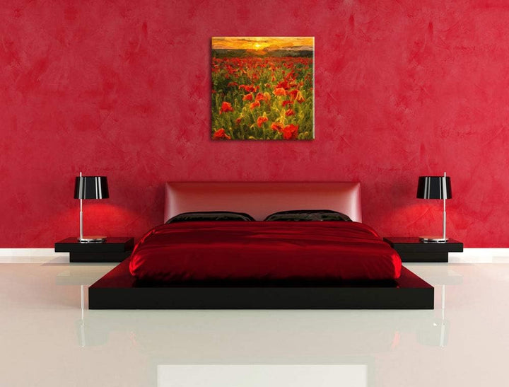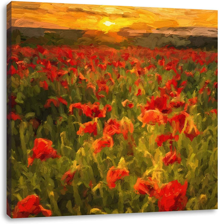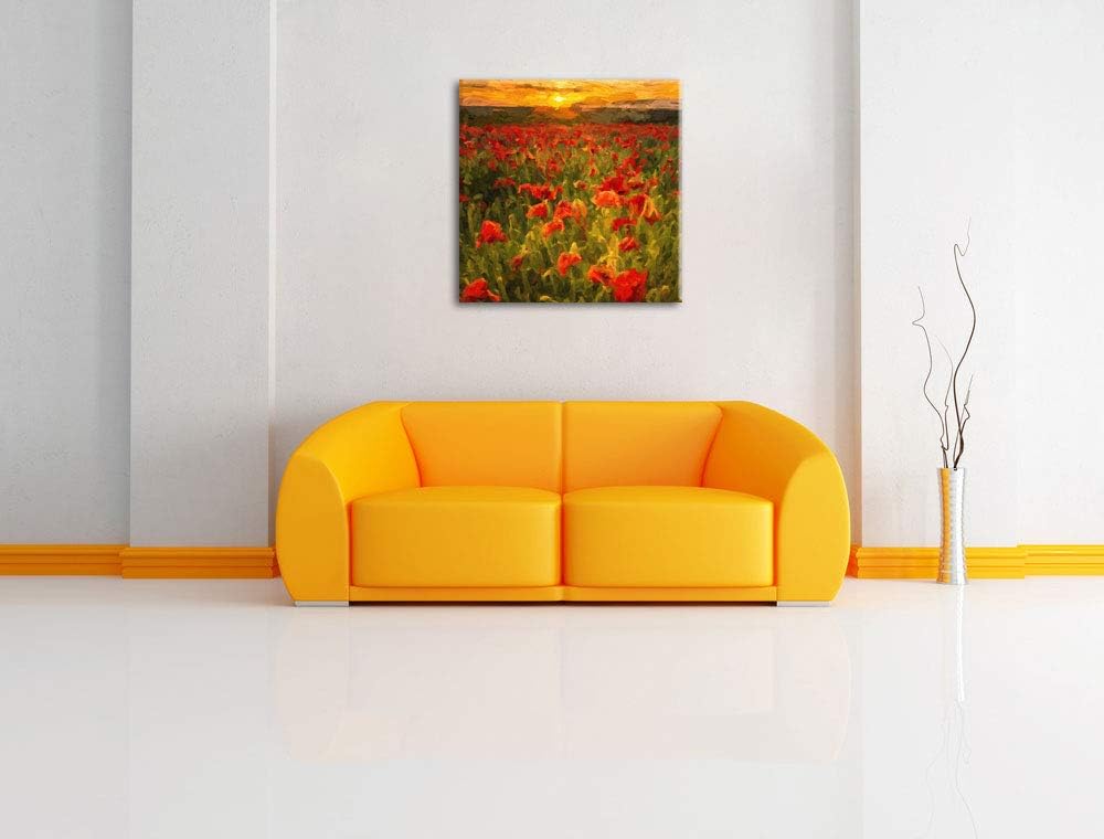 schöne Mohnwiese, Format: 70x70 auf Leinwand, XXL riesige Bilder fertig gerahmt mit Keilrahmen, Kuns