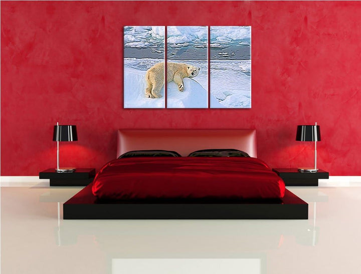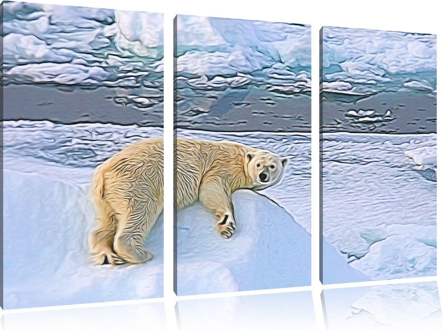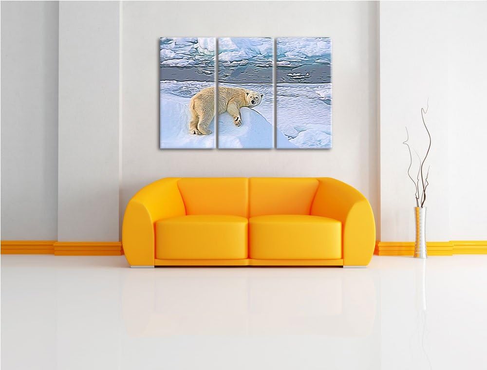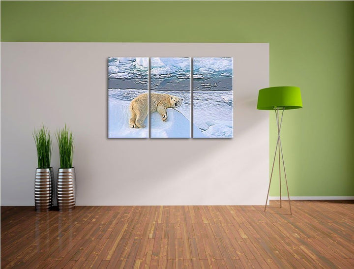 schöner Eisbär auf kleinem Eisberg NewArt 3-Teiler Leinwandbild 120x80 Bild auf Leinwand, XXL riesig