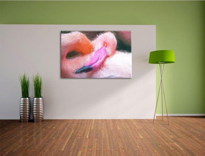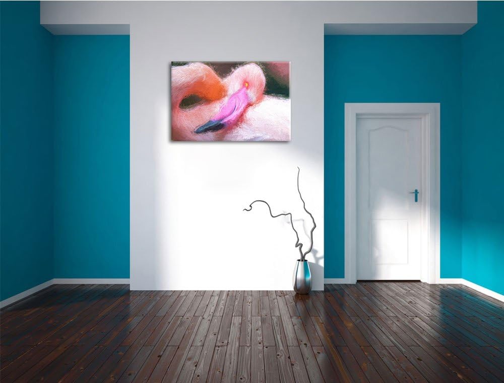 schöner Flamingo Deluxe Format: 100x70 cm auf Leinwand, XXL riesige Bilder fertig gerahmt mit Keilra