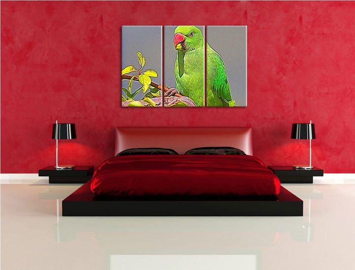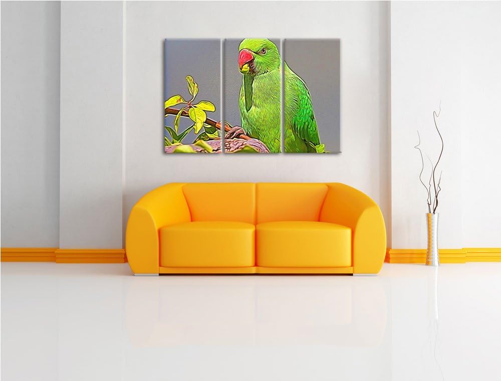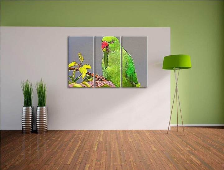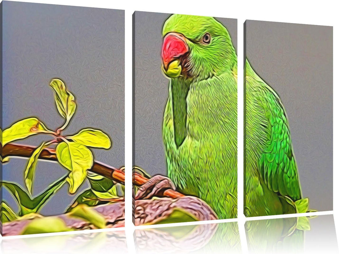 schöner Halsbandsittich beim Essen NewArt 3-Teiler Leinwandbild 120x80 Bild auf Leinwand, XXL riesig