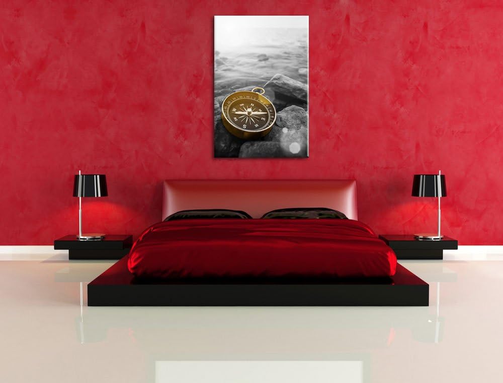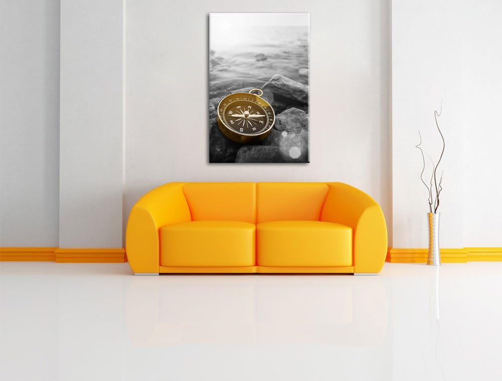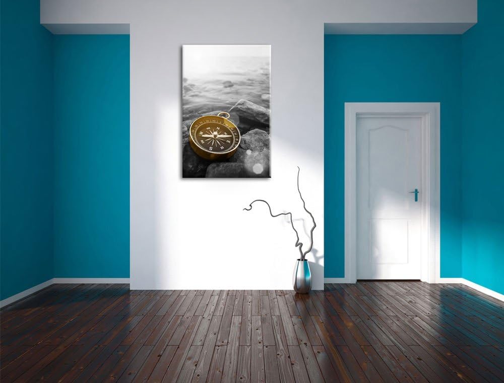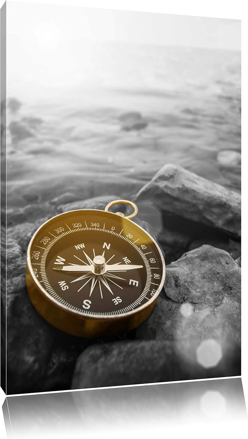 schöner Kompass Reiselust schwarz/weiss Format: 100x70 auf Leinwand, XXL riesige Bilder fertig gerah