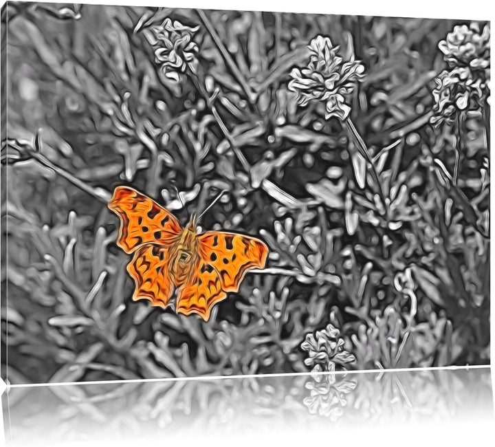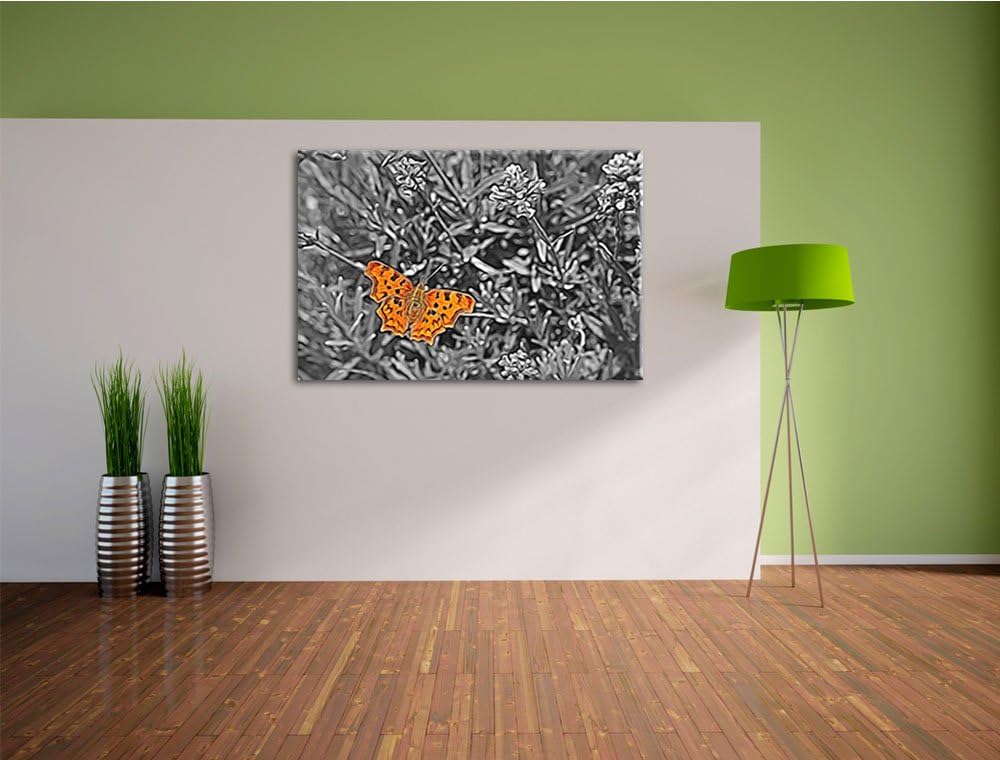 schöner Schmetterling auf Blumenwiese schwarz/weiss Deluxe Format: 100x70 cm auf Leinwand, XXL riesi