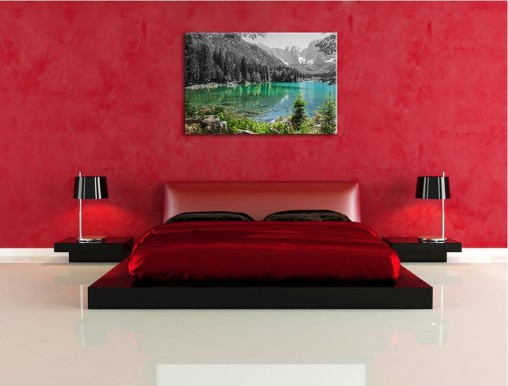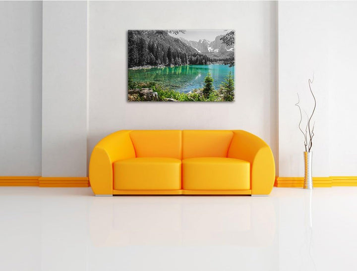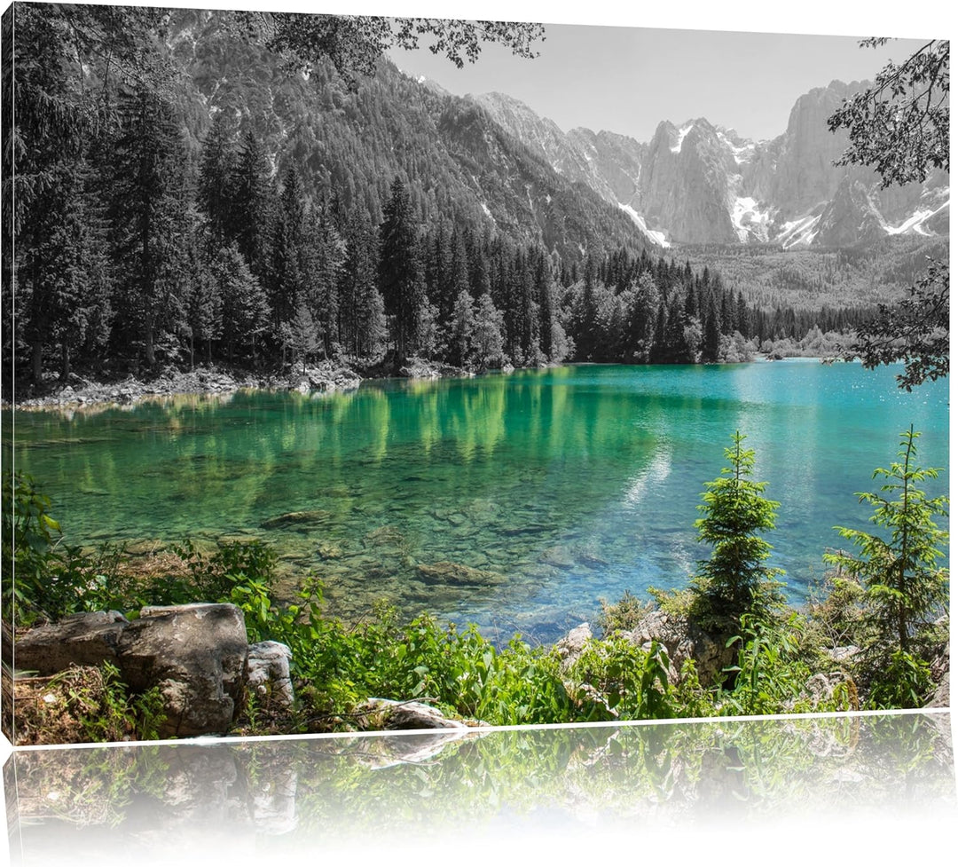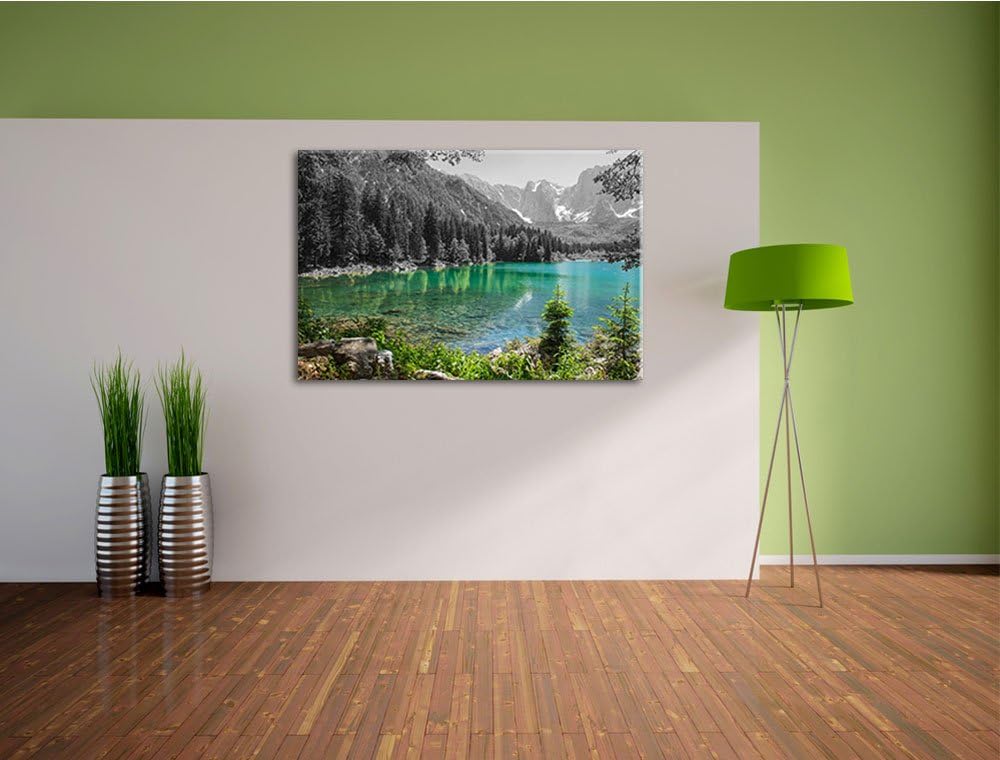 schöner See in einer Berglandschaft schwarz/weiss Format: 100x70 auf Leinwand, XXL riesige Bilder fe
