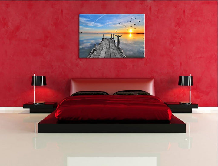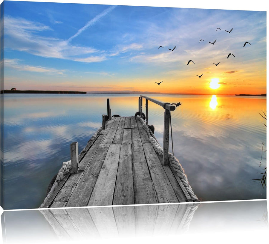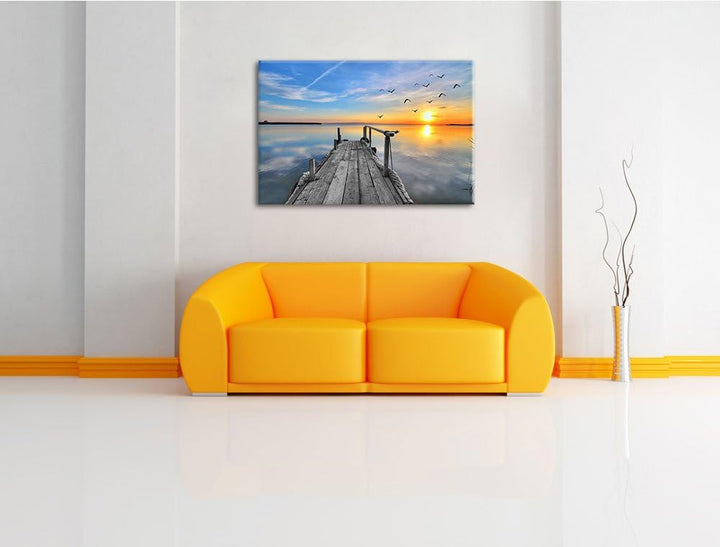 schäner Steg mit Möwen schwarz/weiss Format: 100x70 auf Leinwand, XXL riesige Bilder fertig gerahmt
