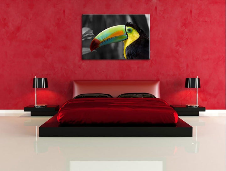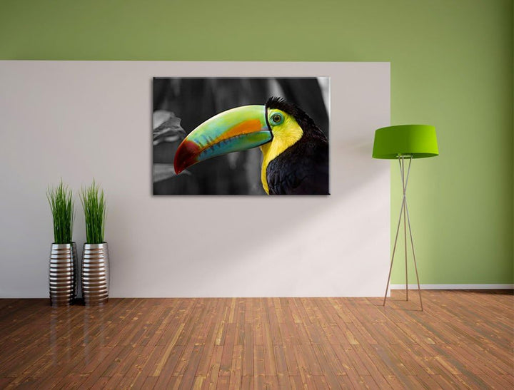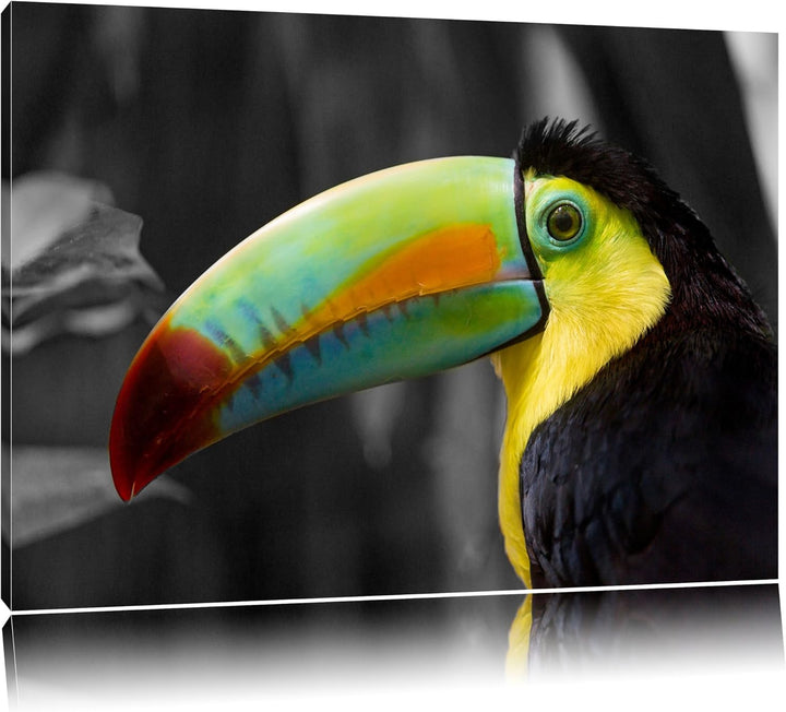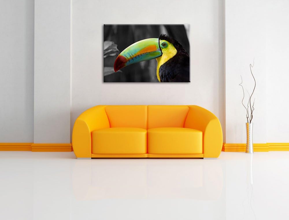 schöner stolzer Tukan schwarz/weiss auf Leinwand, XXL riesige Bilder fertig gerahmt mit Keilrahmen,