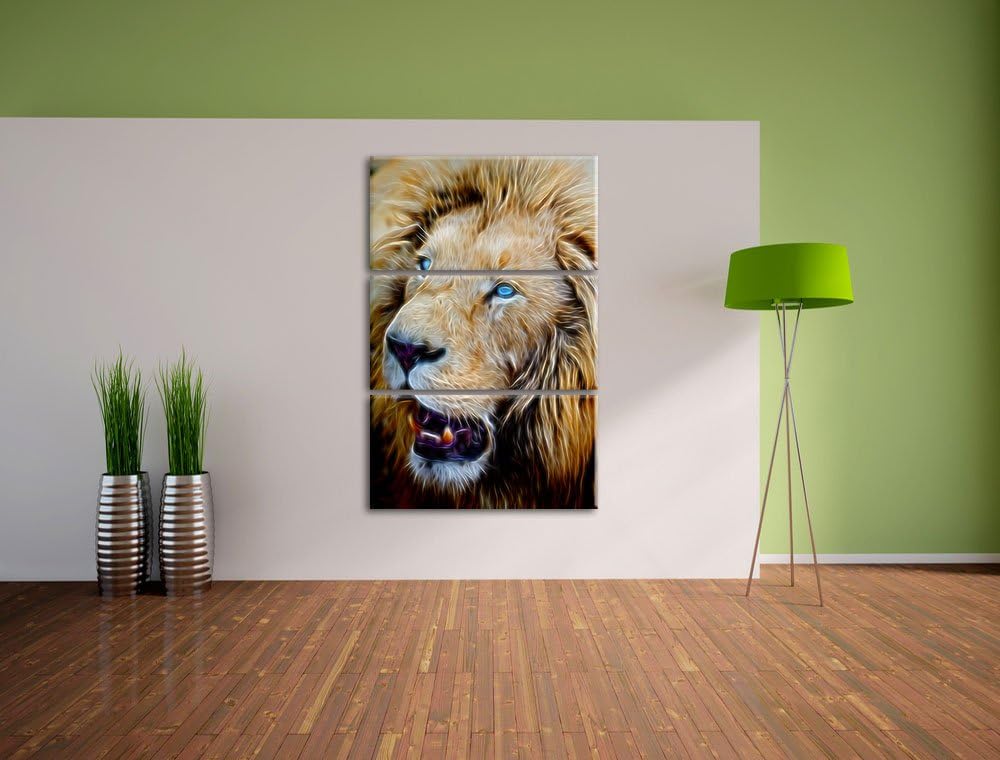 schöner weisser Löwe Spezial 3-Teiler Leinwandbild 120x80 Bild auf Leinwand, XXL riesige Bilder fert