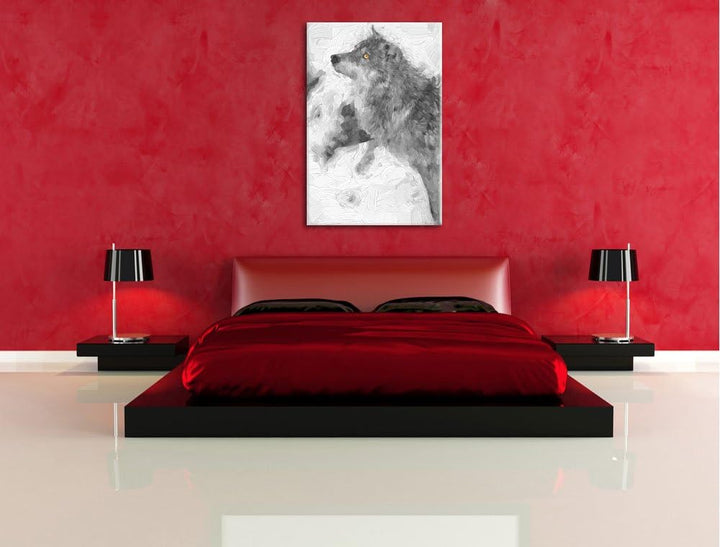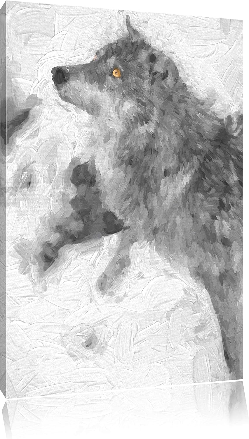 schöner Wolf im Schnee schwarz/weiss Deluxe Format: 100x70 cm auf Leinwand, XXL riesige Bilder ferti