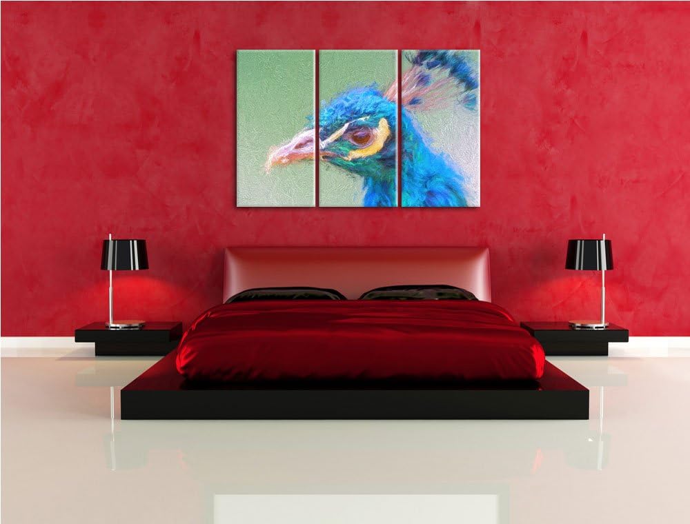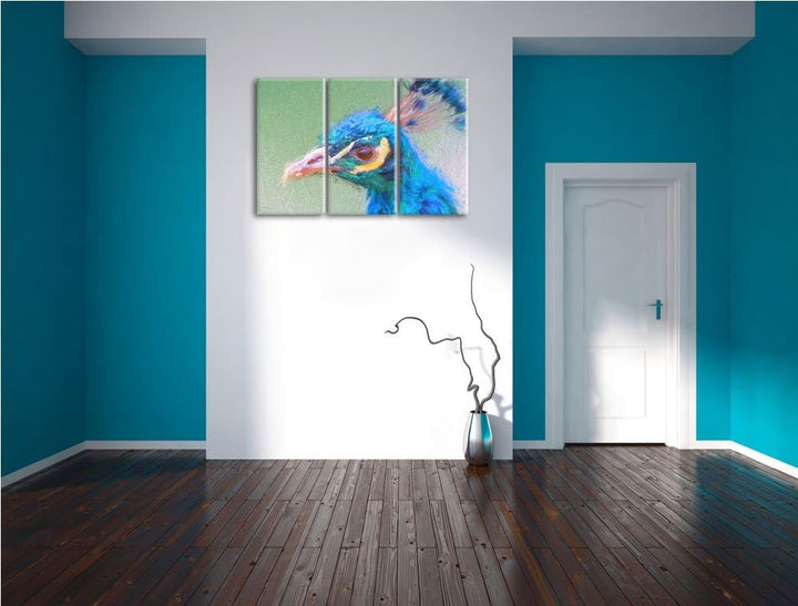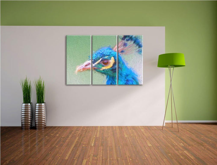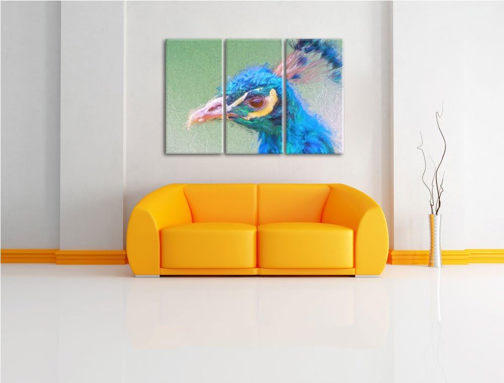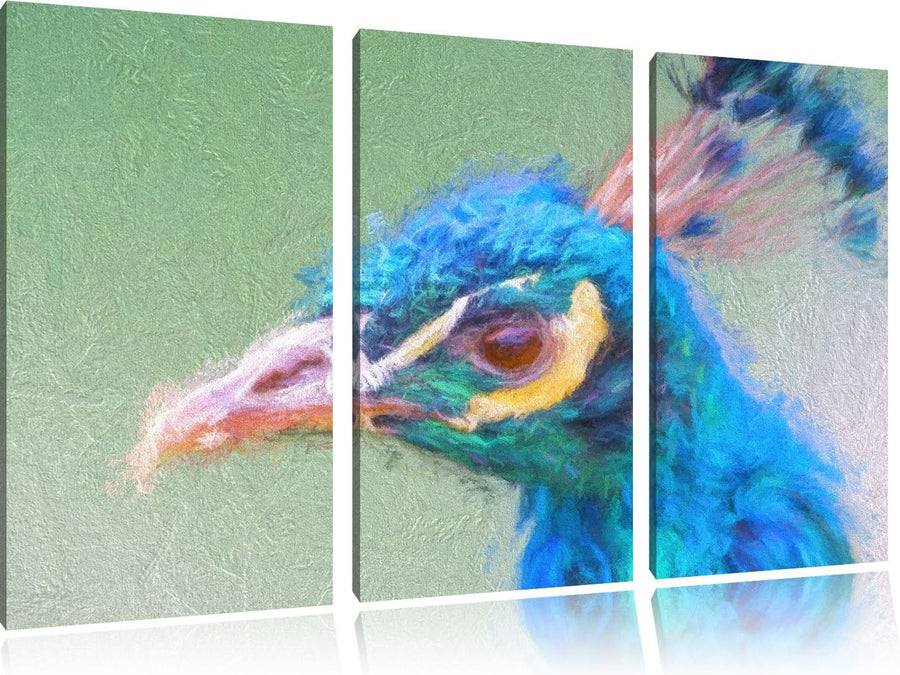 schöner farbenfroher Pfau Spezial 3-Teiler Leinwandbild 120x80 Bild auf Leinwand, XXL riesige Bilder