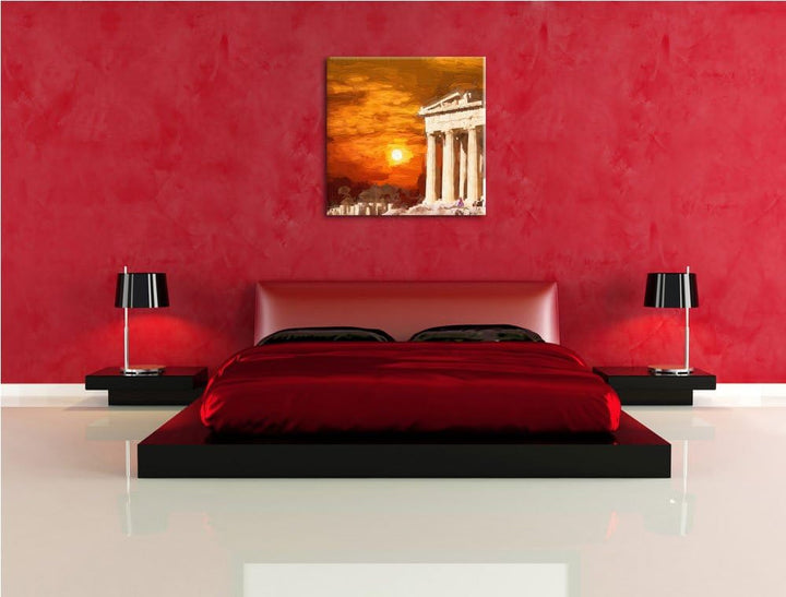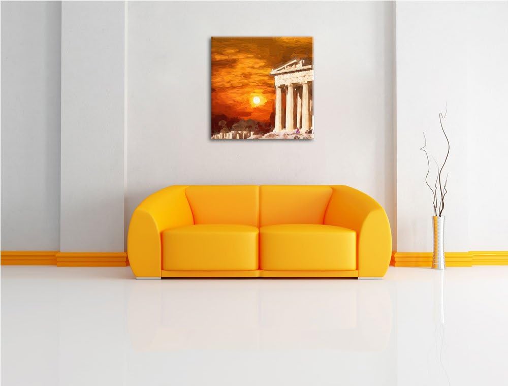 schöner Tempel der Athene, Format: 70x70 auf Leinwand, XXL riesige Bilder fertig gerahmt mit Keilrah