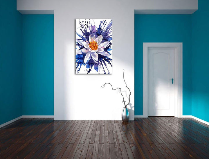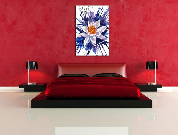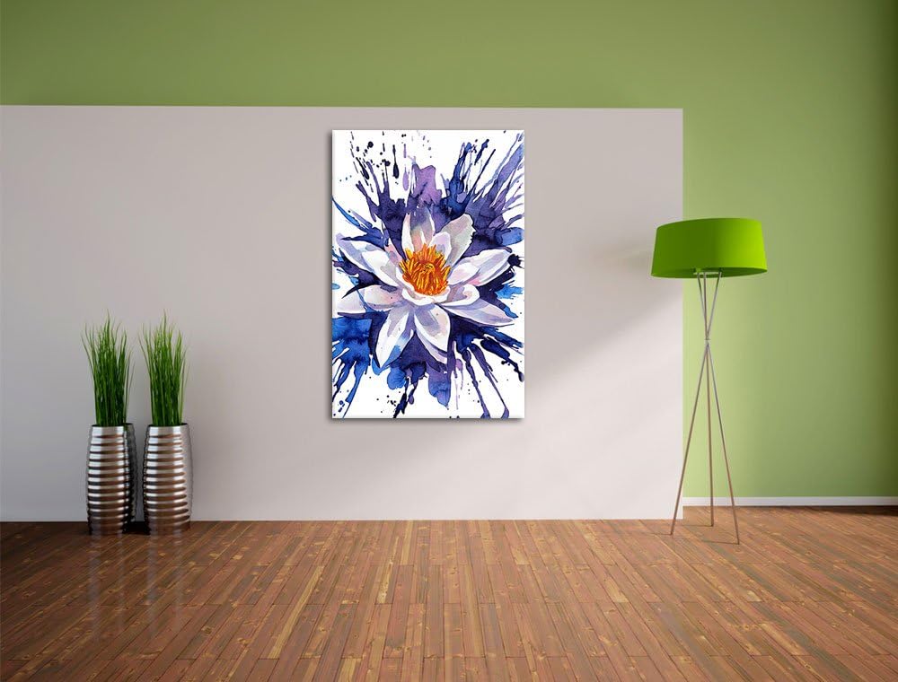 schönes Gemälde einer Seerose Kunst Format: 100x70 auf Leinwand, XXL riesige Bilder fertig gerahmt m