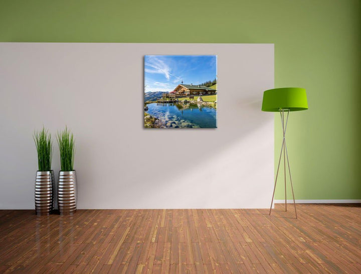 Schönes Haus in den Alpen, Format: 70x70 auf Leinwand, XXL riesige Bilder fertig gerahmt mit Keilrah
