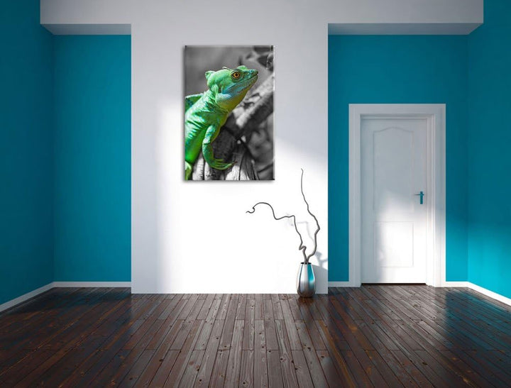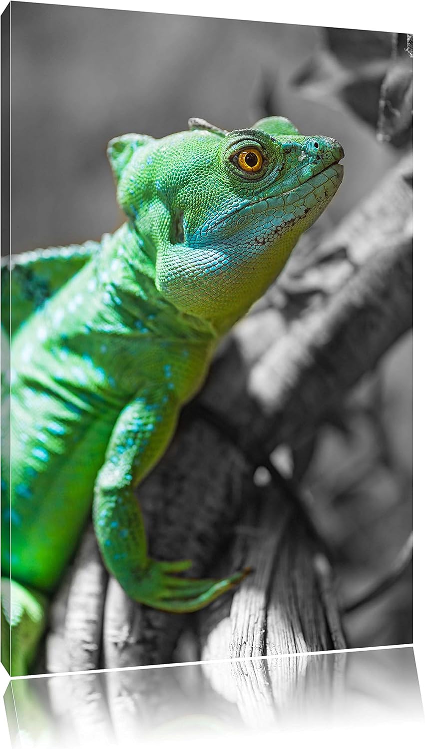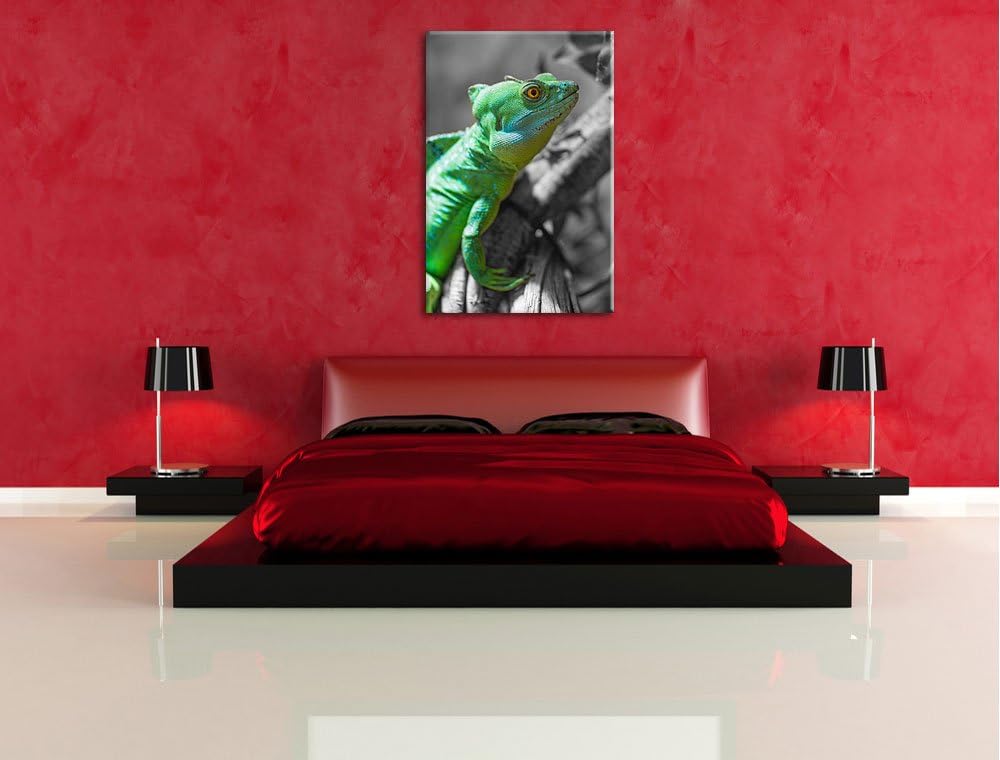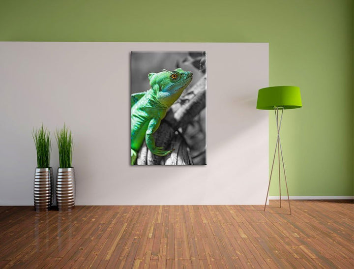 schönes kleines Chamäleon schwarz/weiss auf Leinwand, XXL riesige Bilder fertig gerahmt mit Keilrahm