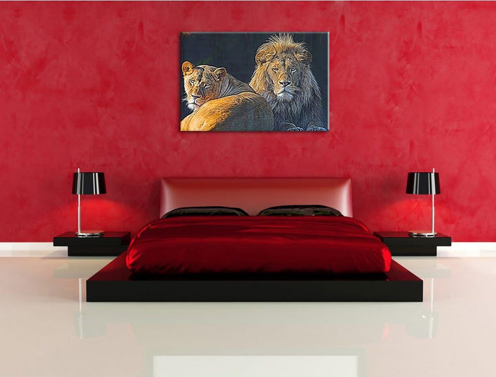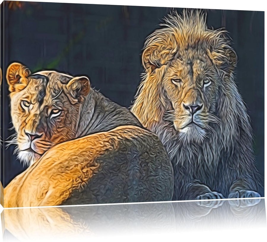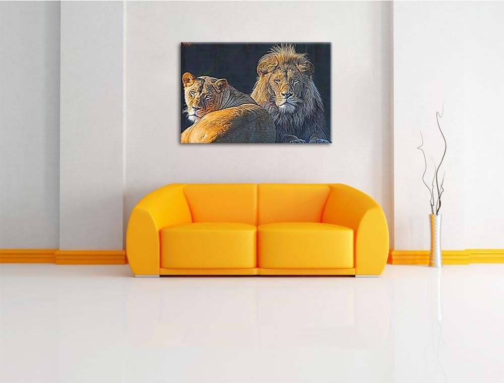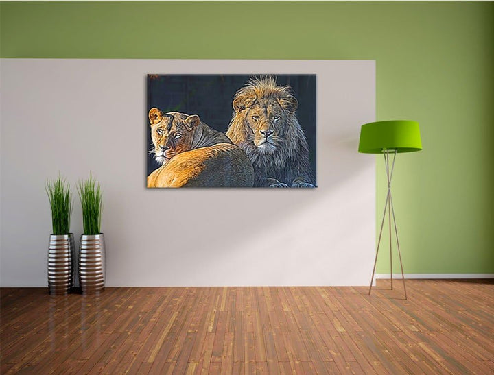 schönes Löwenpaar Deluxe Format: 100x70 cm auf Leinwand, XXL riesige Bilder fertig gerahmt mit Keilr