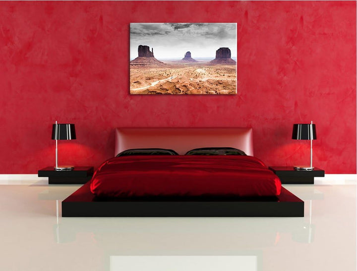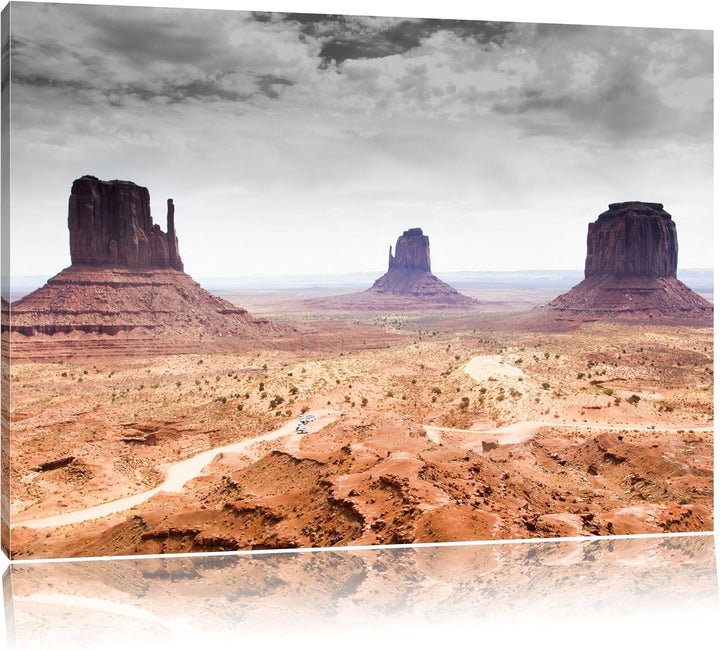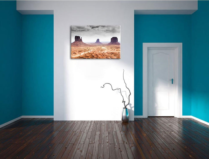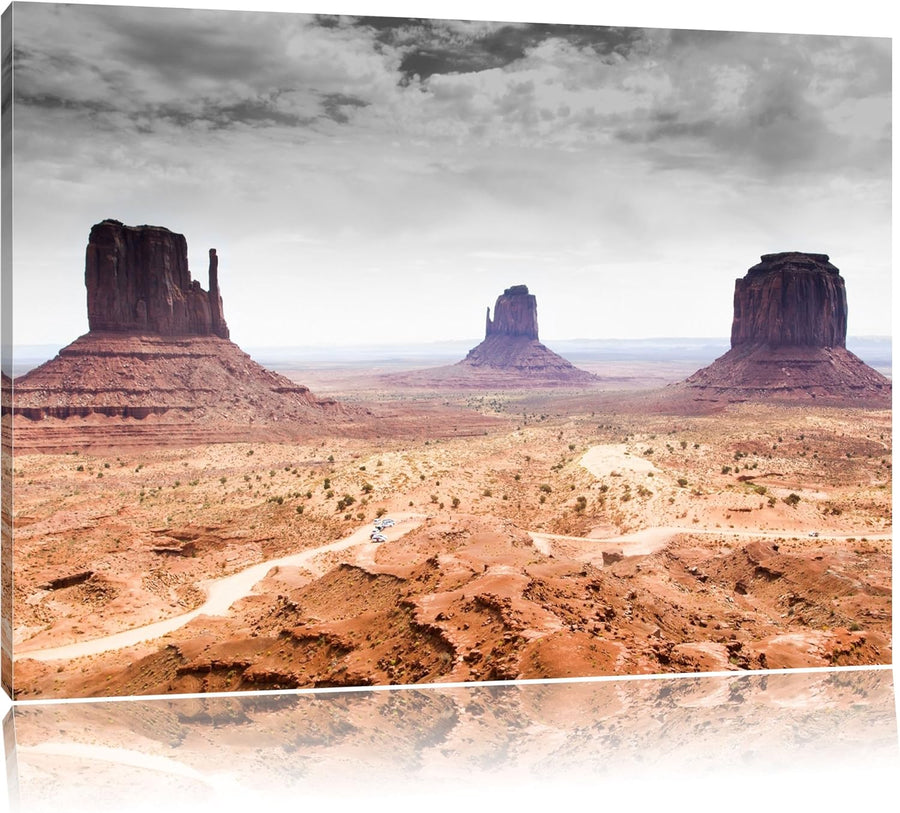 schönes Monument Valley schwarz/weiss Format: 100x70 auf Leinwand, XXL riesige Bilder fertig gerahmt