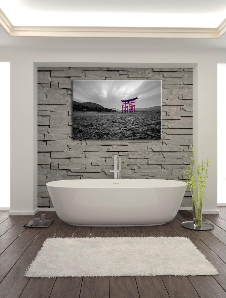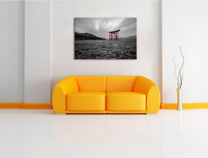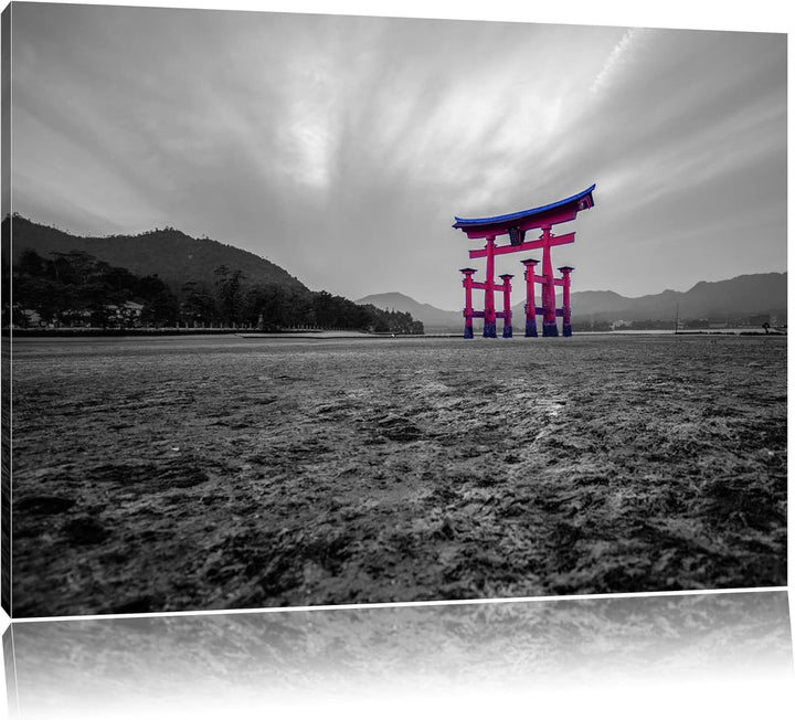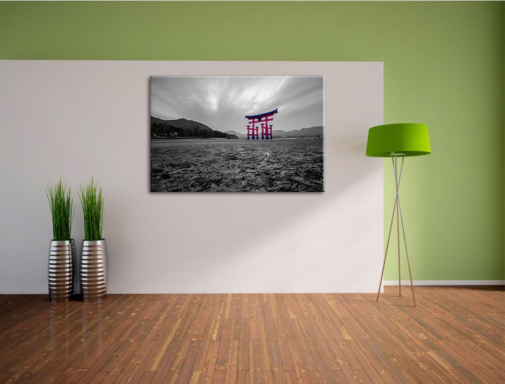 schönes Torii in Hiroshima schwarz/weiss Format: 100x70 auf Leinwand, XXL riesige Bilder fertig gera