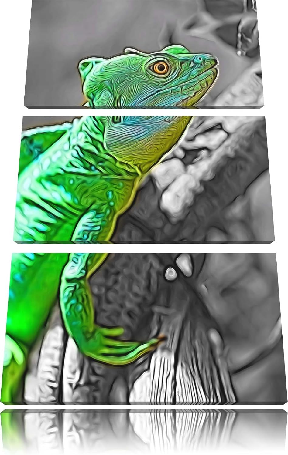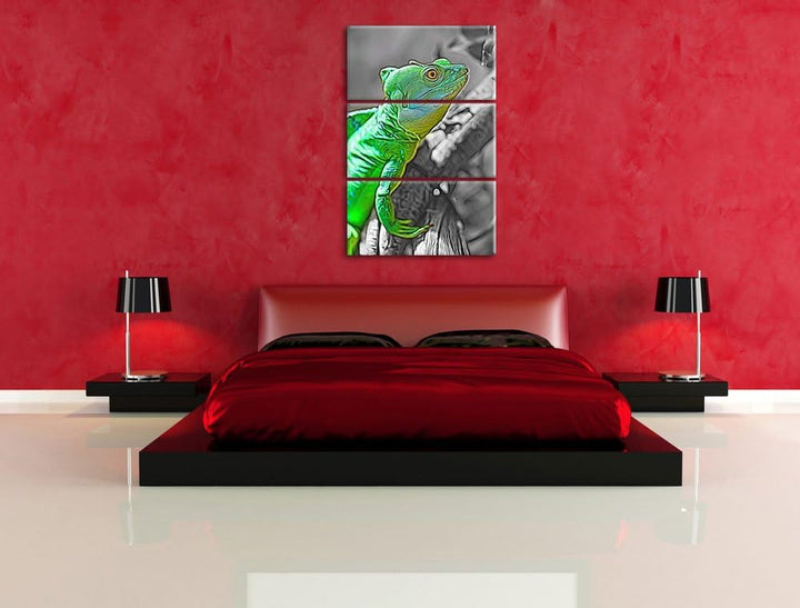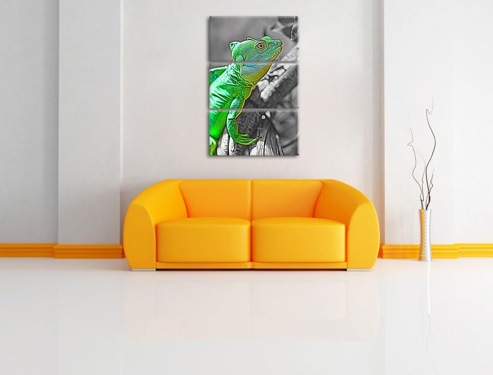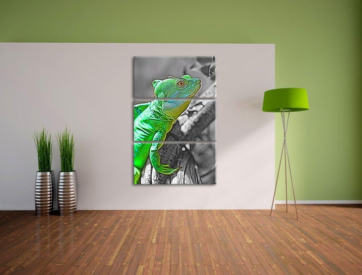 schönes kleines Chamäleon schwarz/weiss Deluxe 3-Teiler Leinwandbild 120x80 Bild auf Leinwand, XXL r