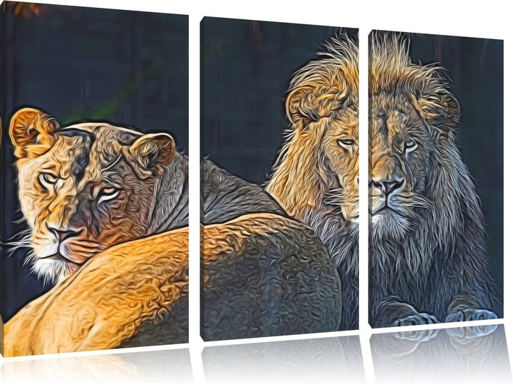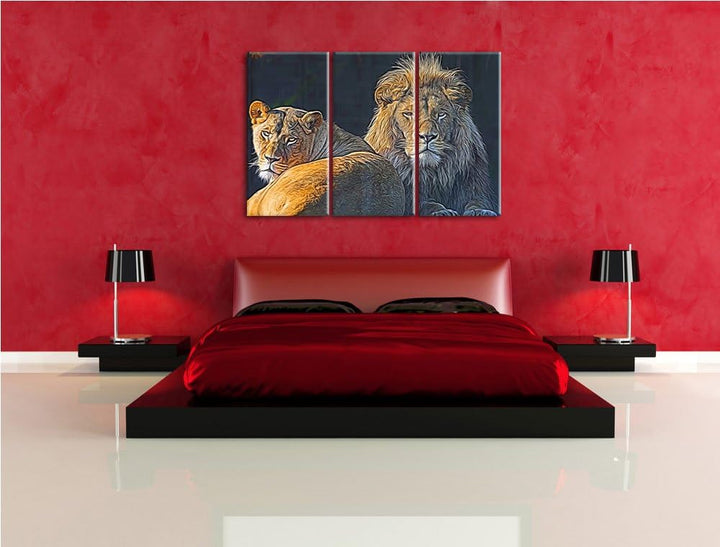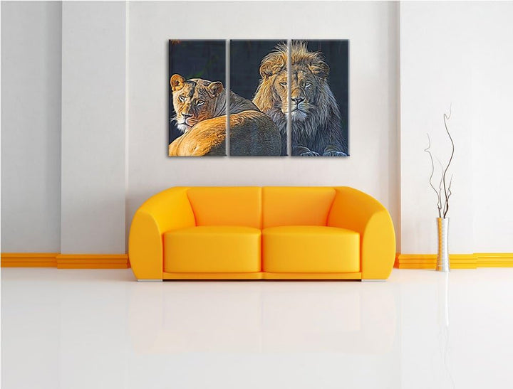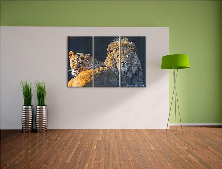 schönes Löwenpaar Spezial 3-Teiler Leinwandbild 120x80 Bild auf Leinwand, XXL riesige Bilder fertig