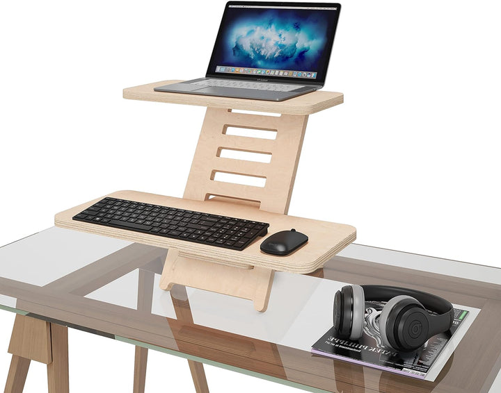 - Der Stehschreibtisch ist sehr einfach zu montieren. Es genügt, zwei Bretter in die Vertiefungen zu stellen und schon ist der Ständer einsatzbereit. Der Laptopständer ist perfekt für jede Art von Schreibtisch oder Tisch. Da unser Stehtisch klappbar