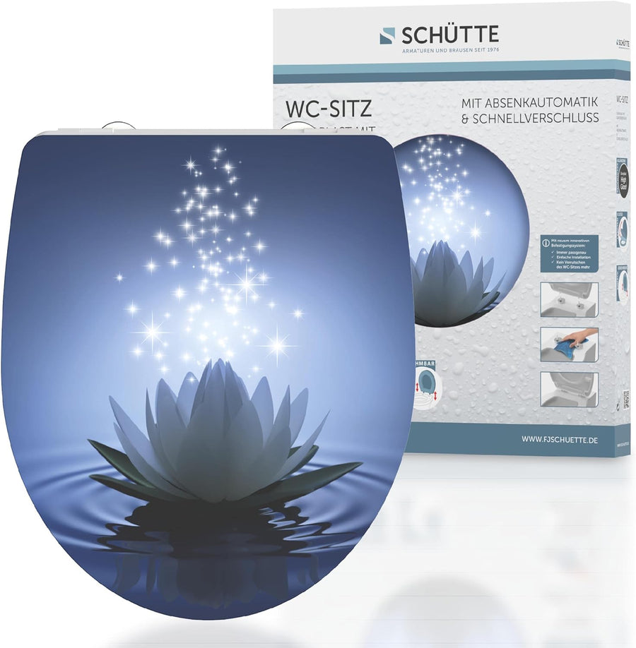 SCHÜTTE WC-Sitz Duroplast HG WATER LILY Hochglänzender Toilettensitz mit Absenkautomatik, Schnellver