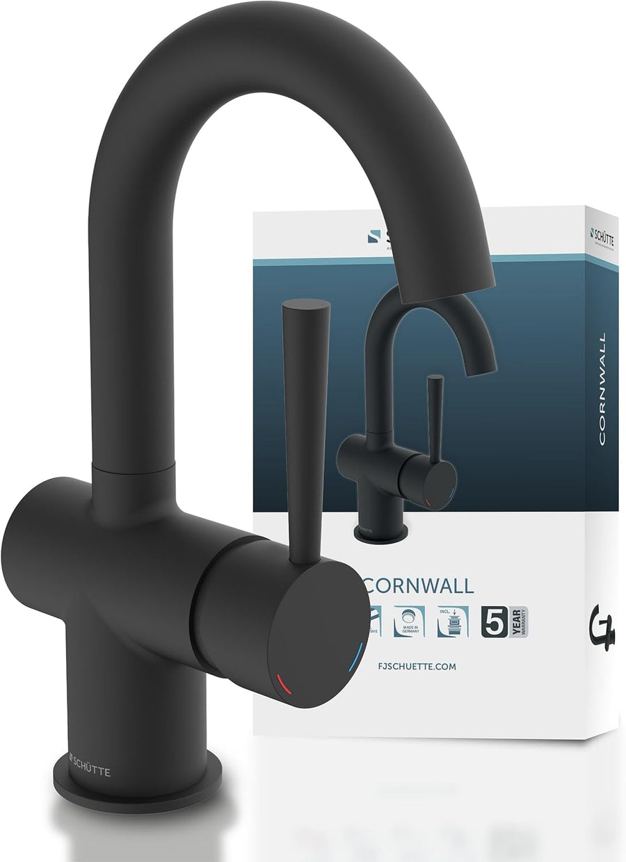 - 🔄 ELEGANTES DESIGN: Die hochwertige mattschwarze Beschichtung dient als Blickfang im Badezimmer und sorgt für eine lange Lebensdauer der Armatur.