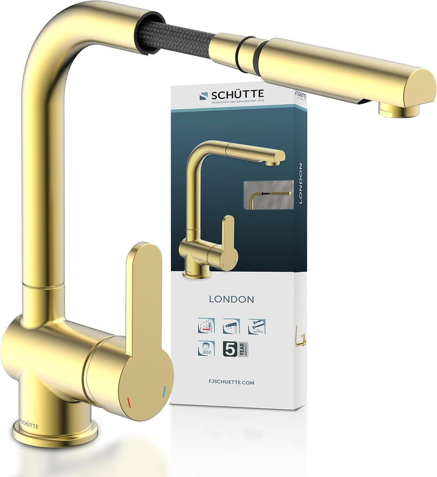 - 📦 LIEFERUMFANG: 1 x Hochdruck Küchenarmatur ausziehbar LONDON (249 x 113 x 298 mm), 2x DVGW zertifizierte, flexible Anschlussschläuche (400 mm), 1x ausziehbare Geschirrbrause mit Schlauch (1500 mm) 1x Befestigungsdreieck für die Spüle, 1x