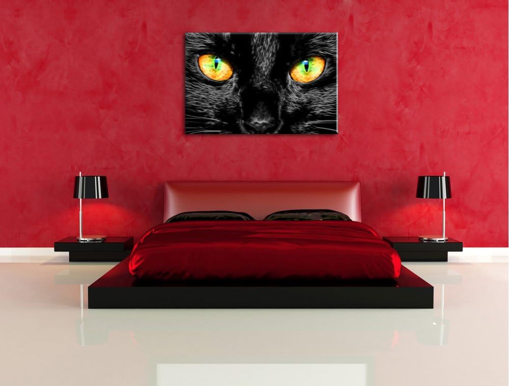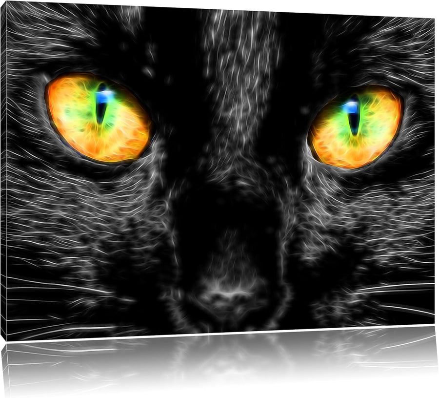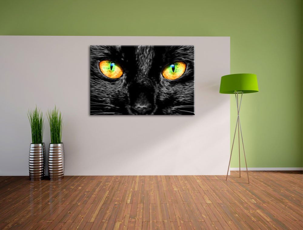 schwarze Katze mit magischen Augen schwarz/weiss Format: 100x70 auf Leinwand, XXL riesige Bilder fer