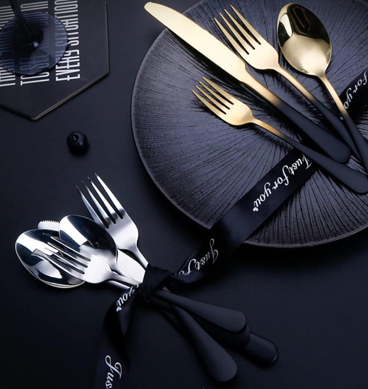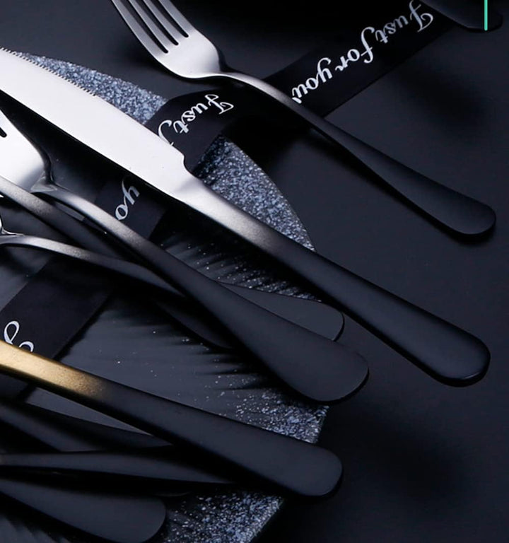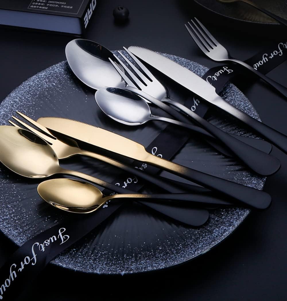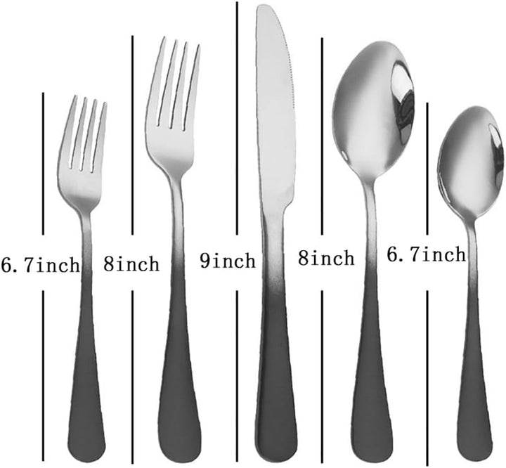 - 【Gradient Black Silber Silverware Set】:Dieses Besteck-Set ist mit Farbverlauf entworfen.Schwarz allmählich in Gold zu ändern, genau wie der dunkle Nachthimmel langsam in Gold bei Sonnenaufgang verwandelt. Verschiedene Farben können verschiedene