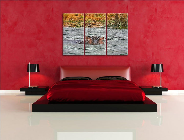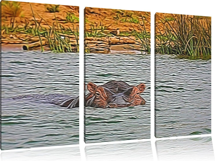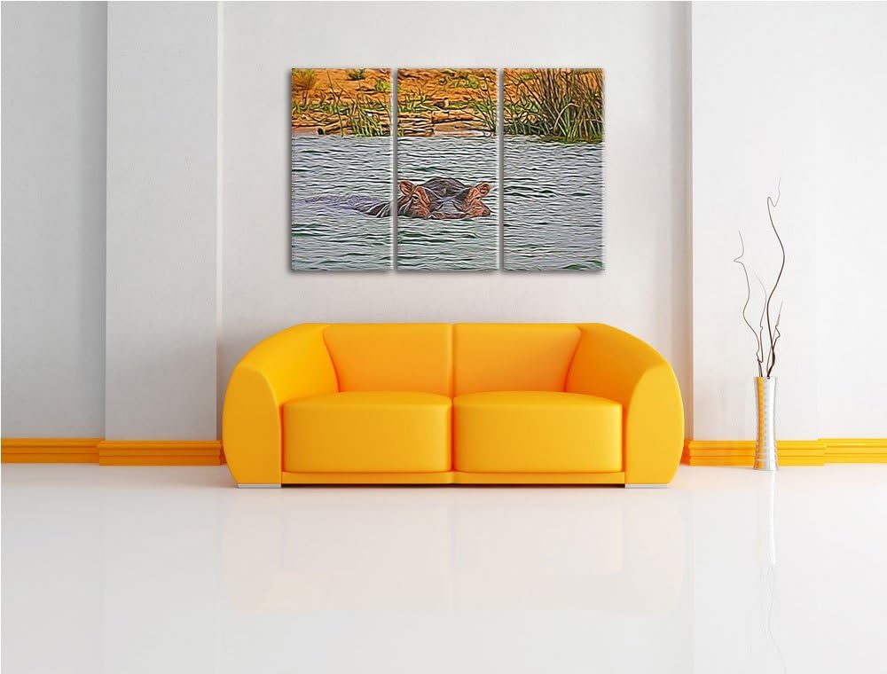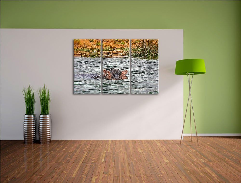 schwimmendes Flusspferd NewArt 3-Teiler Leinwandbild 120x80 Bild auf Leinwand, XXL riesige Bilder fe