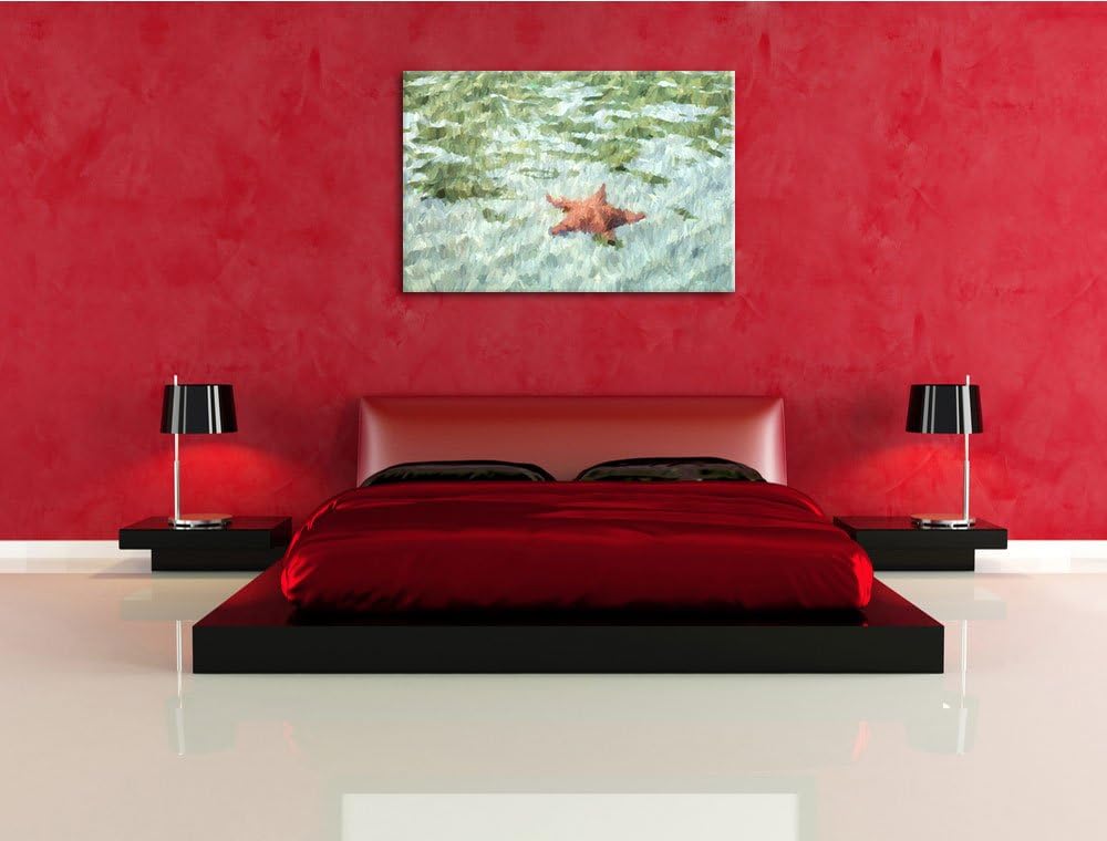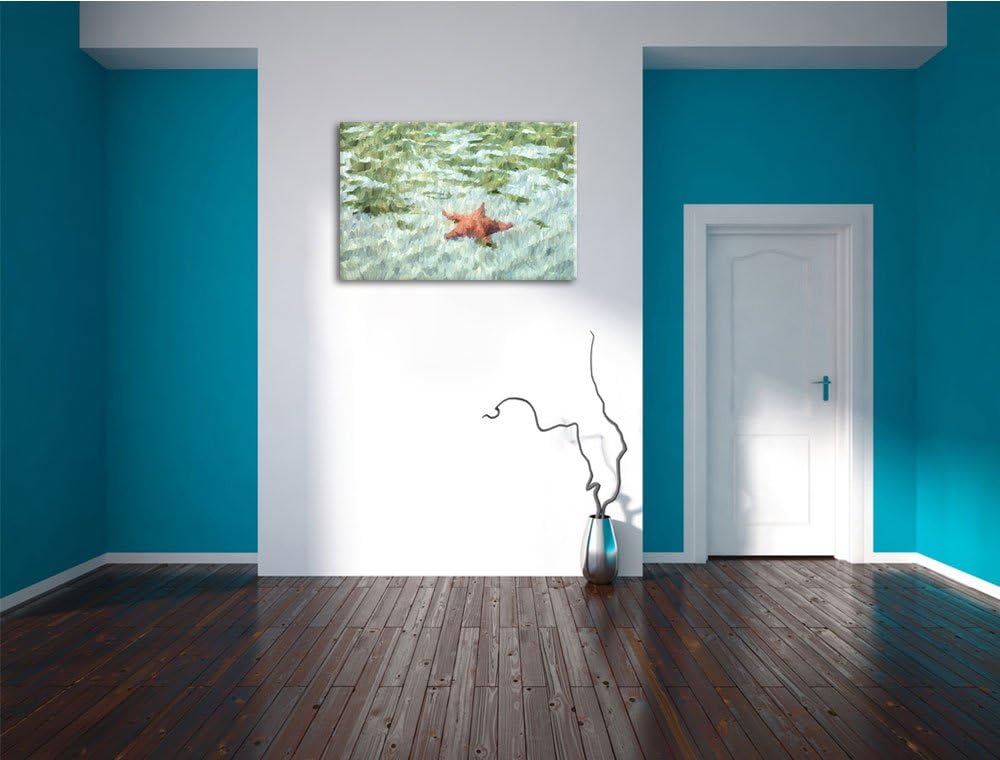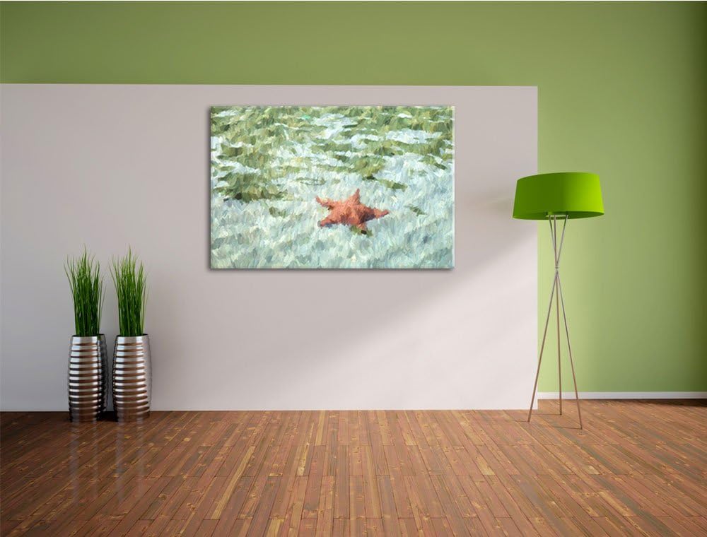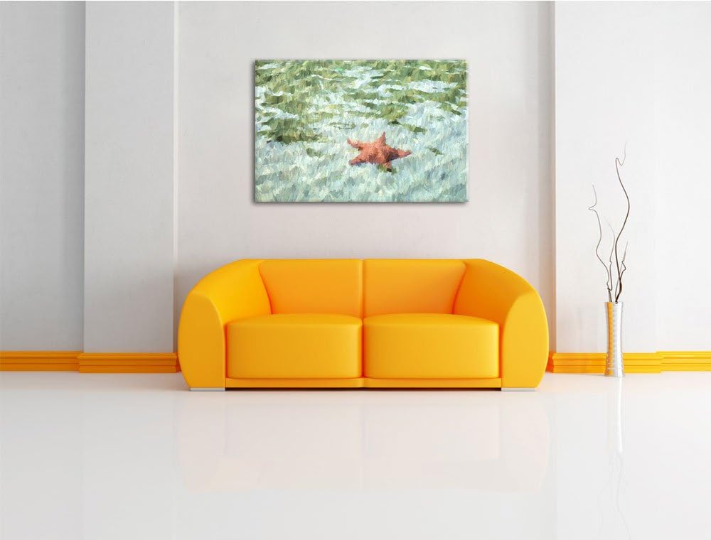 Seestern im klaren Wasser Spezial Format: 100x70 cm auf Leinwand, XXL riesige Bilder fertig gerahmt