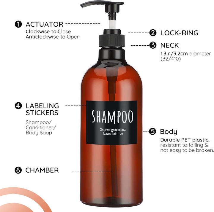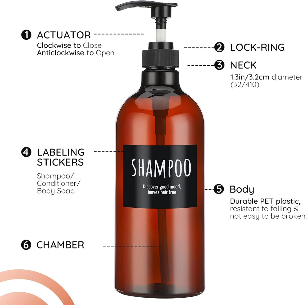 - 【Praktischer Anzug】Das Set enthält 3x Seifenspender, 2x Pumpenköpfe und 1x Trichter. Drei Flaschen sind mit "SHAMPOO, BODY SOAP, CONDITIONER" beschriftet, damit Sie die darin enthaltene Flüssigkeit besser unterscheiden können.