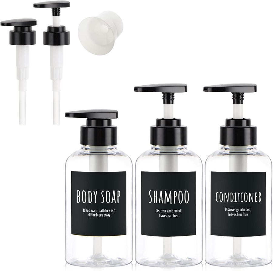 • 【Mit Trichter und 2 EXTRA Pumpenset】 Jede Spenderflasche fasst 10,1 Unzen angemessen grosses Fassungsvermögen, um den täglichen Bedarf der ganzen Familie zu decken. 3 Packungen mit voretikettierten Flaschen, die Shampoo, Spülung und Duschgel