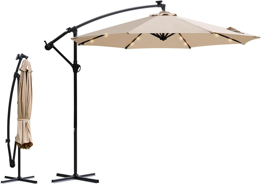 Sekey® LED Solar Ampelschirm 300cm LED Sonnenschirm-Solarbetrieben - UV50+ Sonnenschutz - Robust und