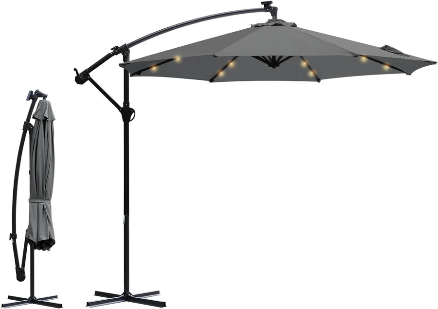 - Langanhaltende Beleuchtung: Dank des Solarpanels auf dem Schirmdach kann der Schirm bei 6-8 Stunden Sonneneinstrahlung bis zu ๐-๐๐ ๐๐ญ๐ฎ๐ง๐๐๐ง ๐ฅ๐๐ง๐ ๐ฅ๐๐ฎ๐๐ก๐ญ๐๐ง, ideal fรผr gemรผtliche Abende im