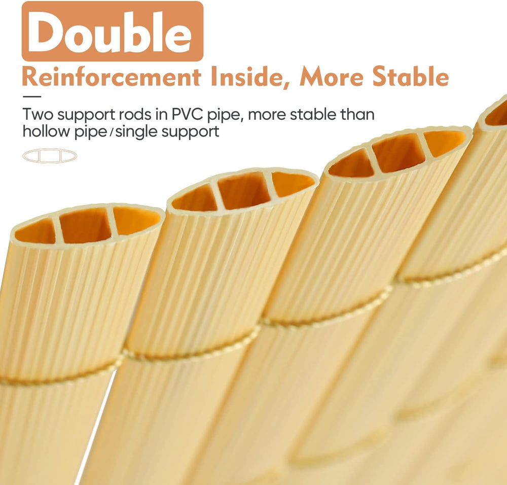 - 【Doppelte Verstärkung im Inneren des Rohrs für Verbesserte Stabilität】Die PVC Sichtschutzmatte ist im Inneren mit 2 zusätzlichen Stützen verstärkt, um ein Brechen der Stützen wirksam zu verhindern. Winddichter und haltbarer als hohle oder