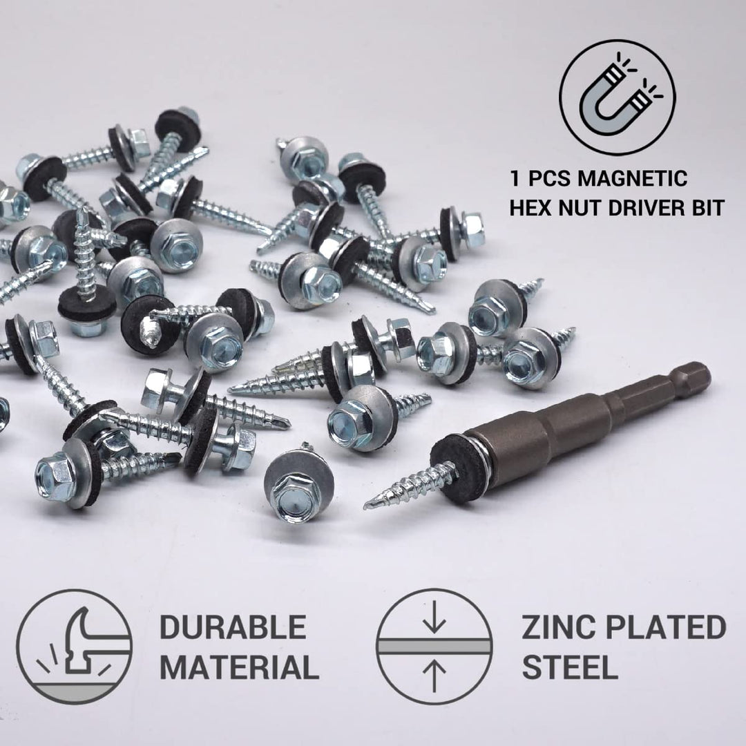 - Sechskantkopf. Diese Schrauben sind geeignet für: Blechbefestigung, Befestigung von Dachrinnen, Blechdachungen, Metallkonstruktionen usw. EPDM-Gummi- und Metall-Unterlegscheiben versiegeln und sichern die Verbindungen vor Korrosion und