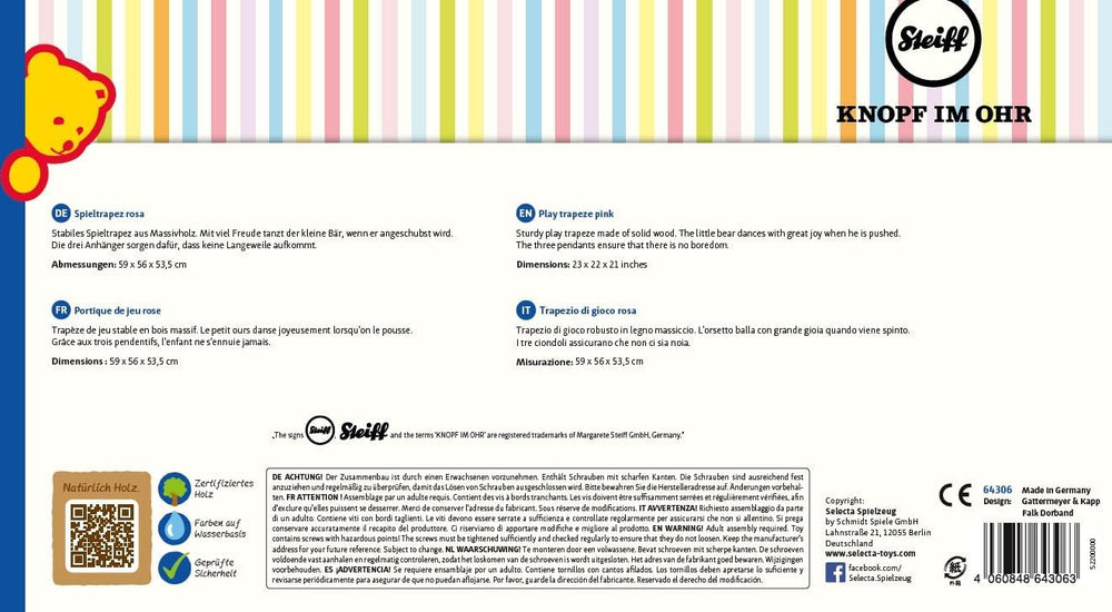 Selecta Bear 64306 Steiff Spieltrapez aus Holz, rosa, 59 cm
