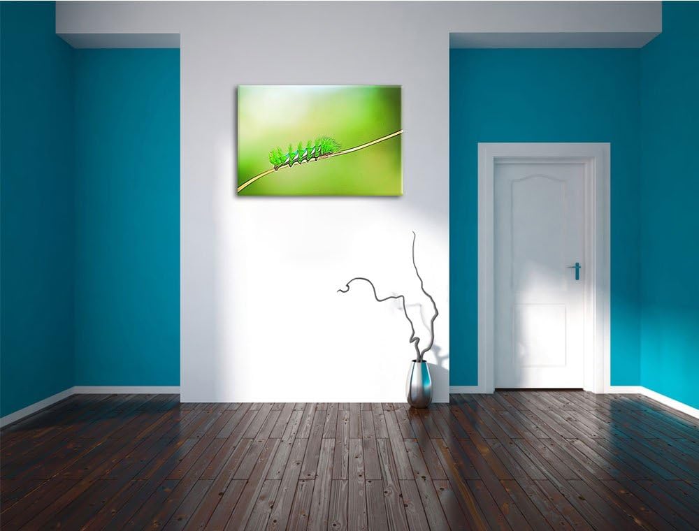 seltene grüne Raupe Deluxe Format: 100x70 cm auf Leinwand, XXL riesige Bilder fertig gerahmt mit Kei