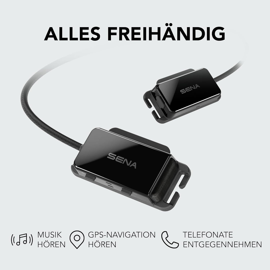 - Bluetooth-Gegensprechanlage, die an den meisten Fahrrad- und Multisporthelmen durch Einklipsen an den Helmriemen befestigt werden kann