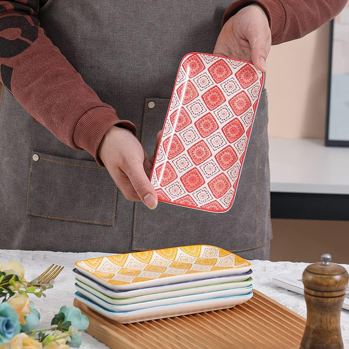 Servierteller Rechteckig Teller Set Porzellan - Rechteckige Teller für Sushi | Dessert | Snack | Vor