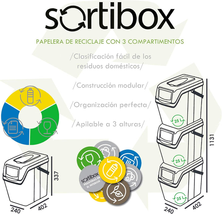 - Prosperplast 3er Set Würfel 3x25L grau Korbeimer mit Deckel stapelbar 3er Set
