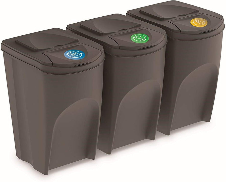 - Prosperplast Sortibox Mülleimer Mülltrennsystem Abfalleimer Behälter (3x35L, Grau)