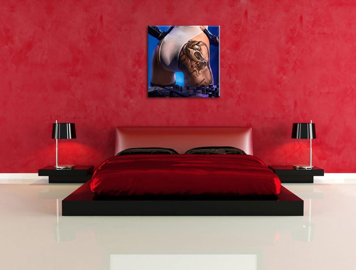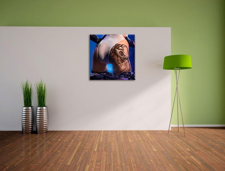 Sexy Frau am Plattenpult, Format: 70x70 auf Leinwand, XXL riesige Bilder fertig gerahmt mit Keilrahm