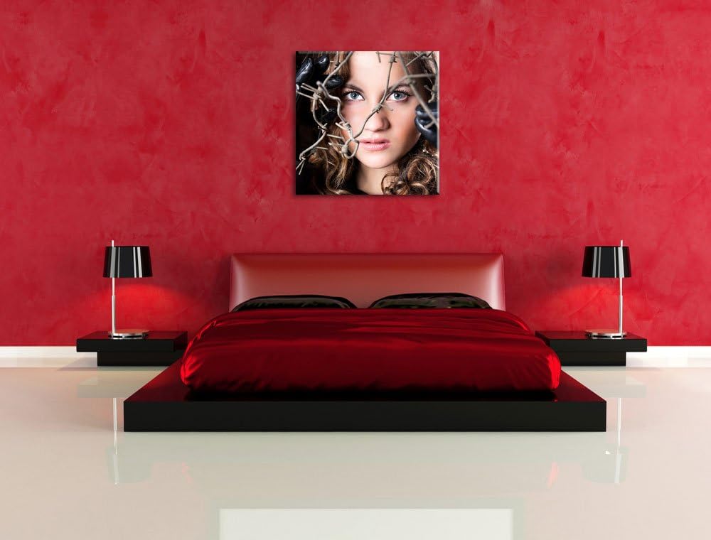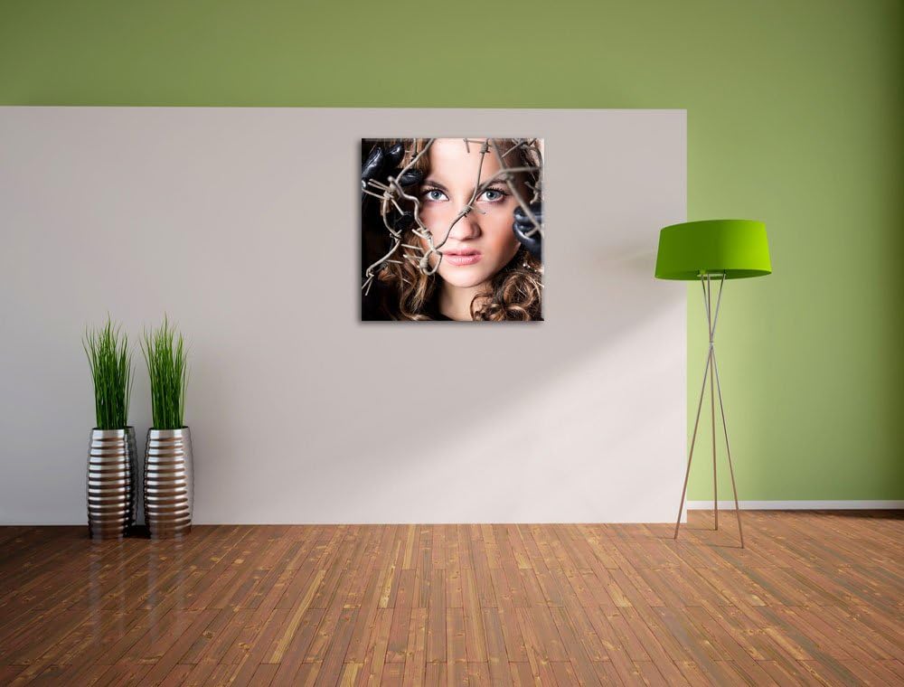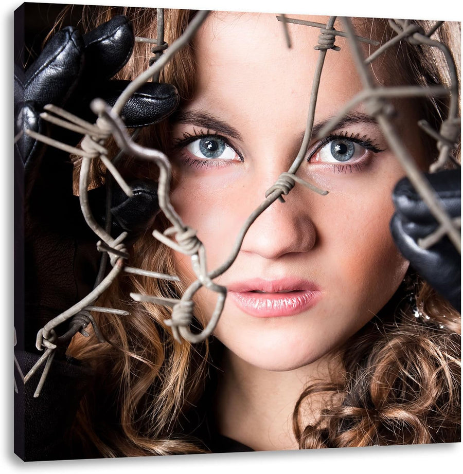 Sexy girl Stacheldraht, Format: 70x70 auf Leinwand, XXL riesige Bilder fertig gerahmt mit Keilrahmen