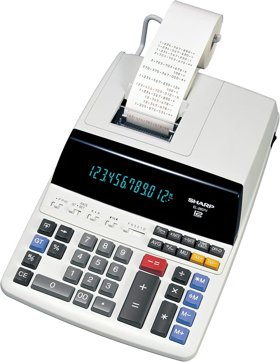 Sharp Druckender Tischrechner EL-2607V (12-stellig, schwarz rote Druckfarben) weiss Single, Single
