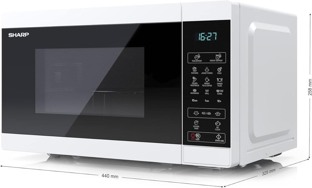 SHARP MG02EW Mikrowelle mit Grill (Mikrowelle: 800W, Grill: 1000W, 11 Leistungsstufen, Auftaufunktio