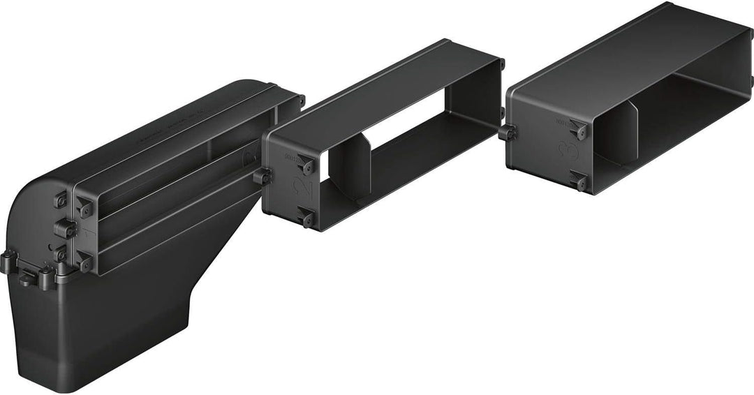 • Bestehend aus: 3 zusammensteckbare Tiefenadapter (40mm 80mm 120mm) für Arbeitsplattentiefen von 600 - 750mm 90° Umlenkstück Verbindungsstück für weitergehende Verrohrungen mit 220x90mm Flachkanäle