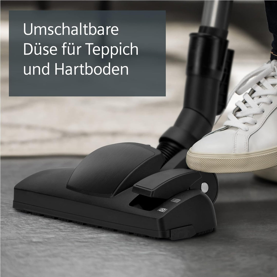 • Lieferumfang: Staubsauger mit Beutel, Fugen- und Polsterdüse in das Gerät integriert, umschaltbare Rollendüse, Möbelpinsel, XXL-Polsterdüse, Zubehör-Clip, verstellbares Teleskoprohr
