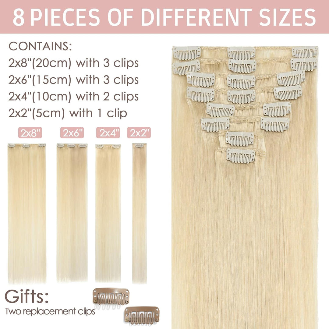 - 【100% echtes haare, natürlicher und komfortabel】 clip in extensions sind aus hochwertigem brasilianischem remy echthaar, seidig glatt mit extra glanz und ohne verwicklungen. die dicke ist von kopf bis schwanz gleich. Dauerhafte extensions echthaar