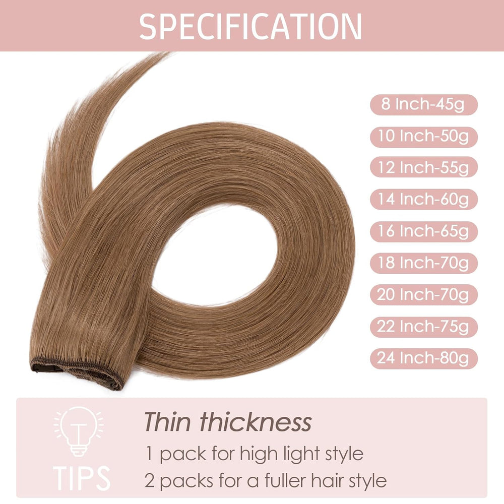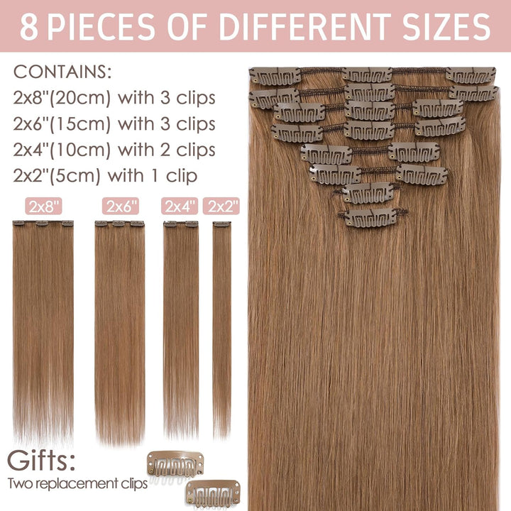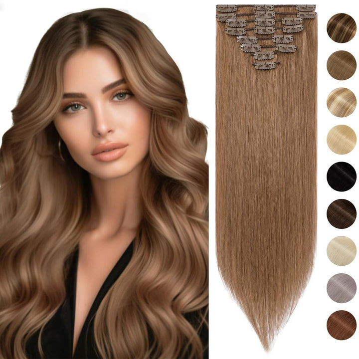 - 【Mehr Auswahl, mehr Vielfalt】Silk-co hair extensions clip in, 8 Stück mit 18 Clips pro Set. Je nach Länge wiegt das Haar etwa 45-80g. Um Ihr Haar zu verdichten, empfehlen wir 1-2 Packungen; für einen vollen Kopf empfehlen wir 2-3 Packungen. Wir